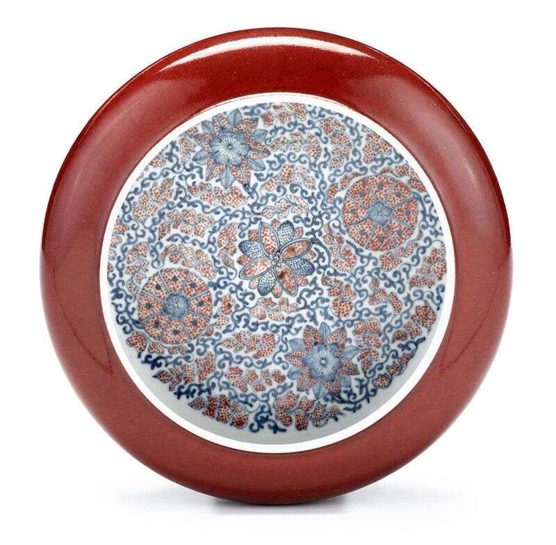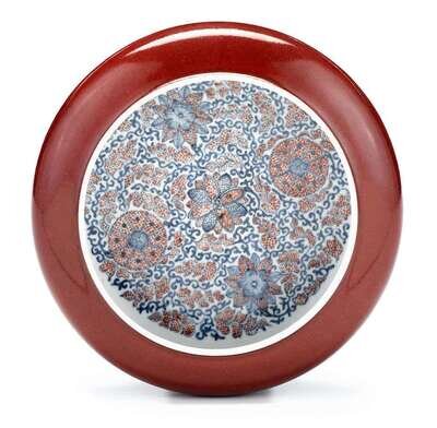 Large Chinese red glazed, blue and copper red underglazed brush washer qianlong mark, 19th century