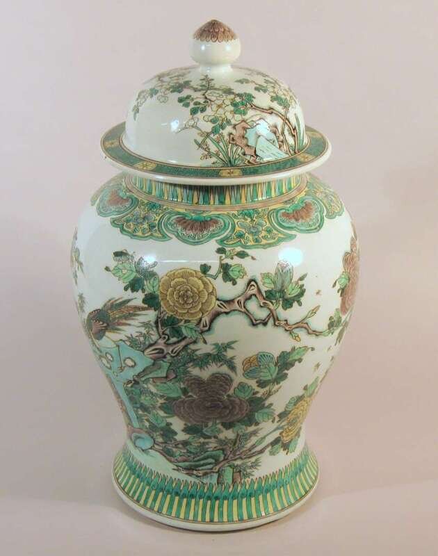 Large Chinese covered famille verte jar 20th century