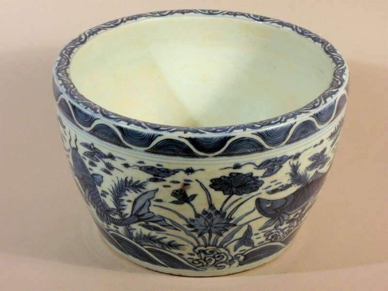 Chinese Yuan style blue and white porcelain jardiniere late qing dynasty
