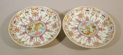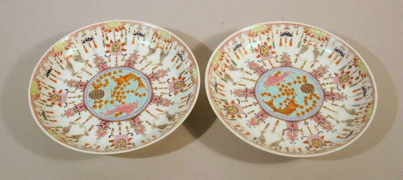 Pair of Chinese famille rose porcelain plates iron red six character guangxu marks, 20th century