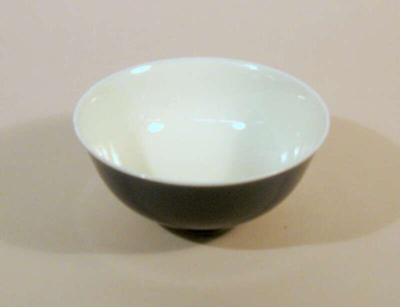 Of conical form, deep blue glazed outer wall, small foot rim, blue underglazed mark.