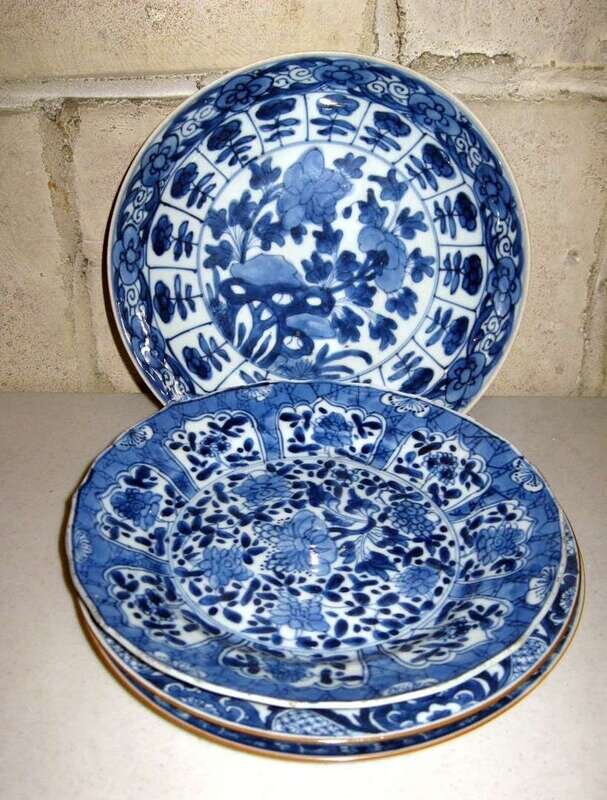 Four Chinese blue and white plates Qing dynasty