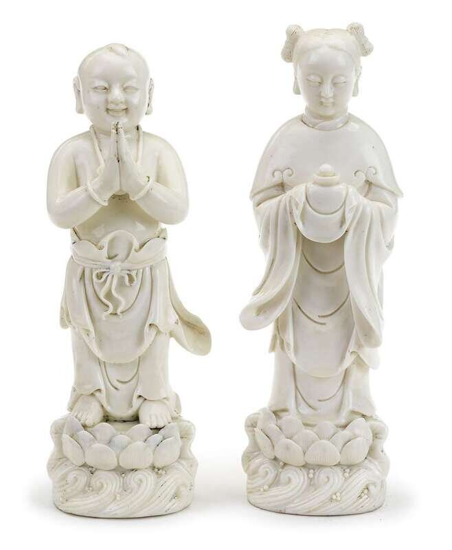 Pair of Chinese blanc de chine boy and girl figures 18th / 19th century