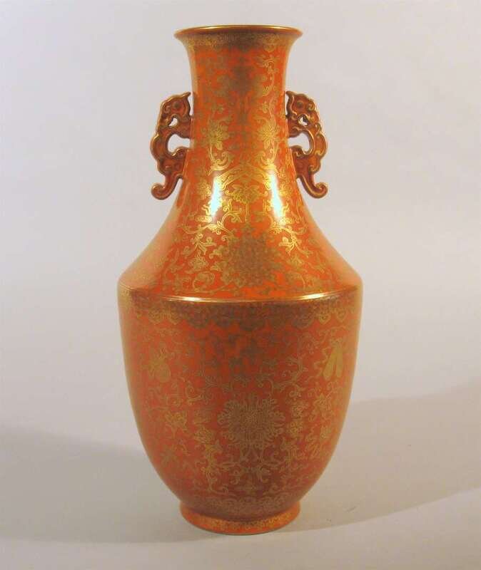 Chinese orange-ground and gilt-decorated vase Qianlong mark, 20th century