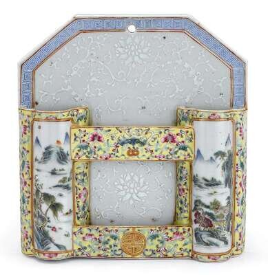 Good Chinese famille rose porcelain letter holder, sconce late qing/early republic period