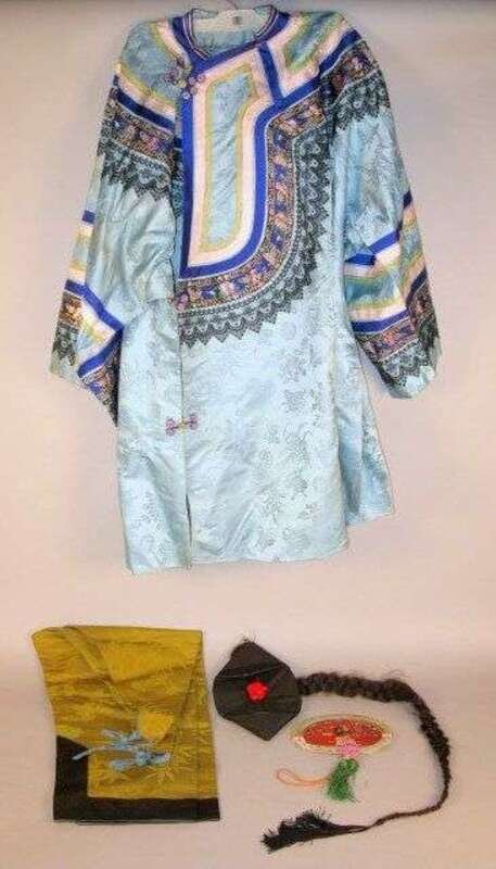 Fine Chinese silk Dowager style robe and accessories early 20th century