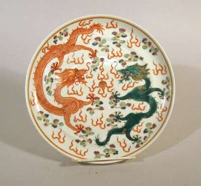 Chinese porcelain dragon dish Guangxu mark, 20th century