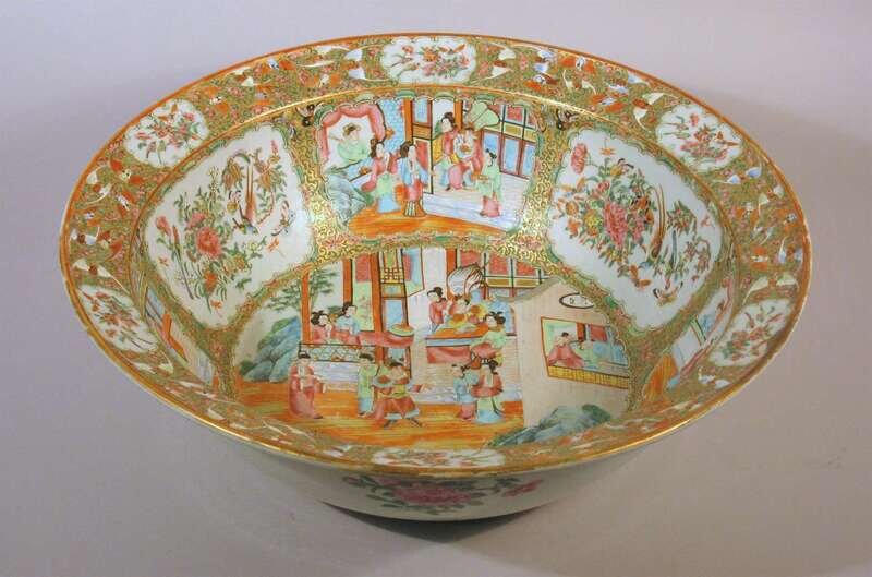 The everted rim issues from U-shaped base showing typical figural landscape.