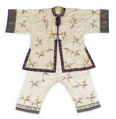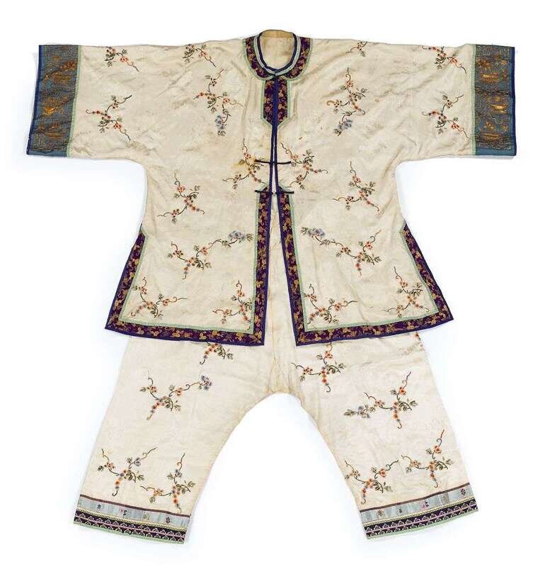 Chinese embroidered silk woman's tunic and trousers early 20th century