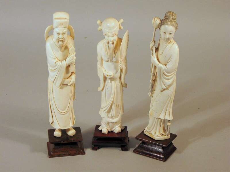 Set of three Chinese elephant ivory carvings