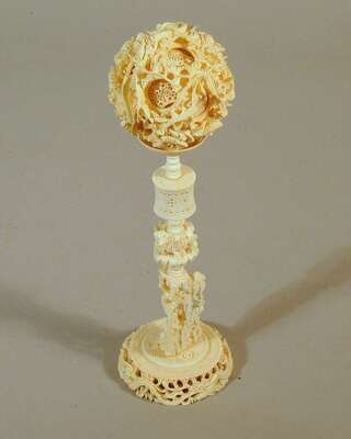 Chinese elephant ivory games ball on stand