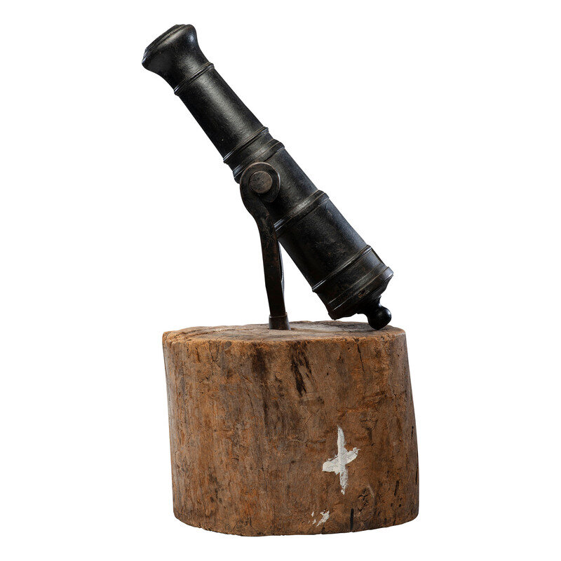 Swivel Gun with Wood Stump Base Attributed to Cook's Arsenal Works