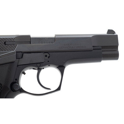 9mm. 4" barrel. SN: 001444. Blued finish, checkered plastic grips. Double action tilting barrel short recoil semi-automatic pistol with removable magazine, adjustable rear and dovetailed fixed front three-dot sight and decocker. In original factory box with paperwork and a total of four magazines. {MODERN}