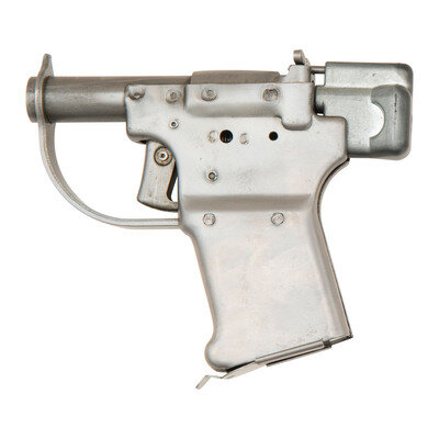 .45 ACP. 4" barrel length. SN: 1942. Bright unfinished metal finish overall with pressed and spot welded construction replicating the originals. Bore is rifled to comply with Federal laws, and the right barrel displays make and model marks reading FP-45 45 ACP/VOCO ETOWN KY. Item is otherwise unmarked. Breechblock is not bored through for the firing pin, rendering it a non-firing replica on a functional frame, thus the FFL modern firearm status. Item comes in a GUARDFORCE VANGUARD storage case with accessories including: Reproduction waxed cardboard box with reprint of original instructions, dowel rod ejector, wood block spacer. Also included are a second reprint of the instructions, a spare grip cover plate, and limited first edition copy of The FP-45 Liberator Pistol 1942-1945 by R.W. Koch. {MODERN}