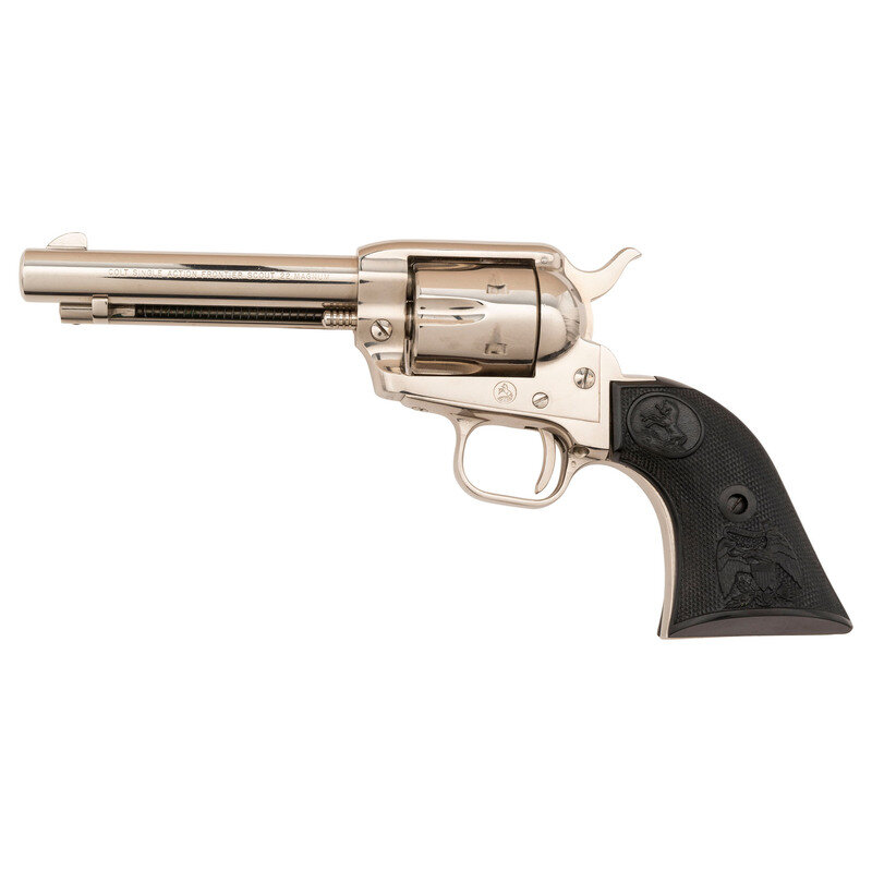 **Nickel 4.75" Colt Single Action Frontier Scout Revolver in .22 Magnum with Extra Grips