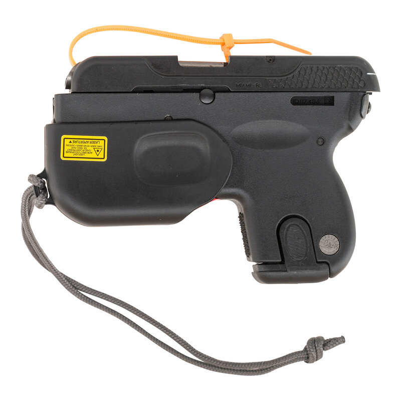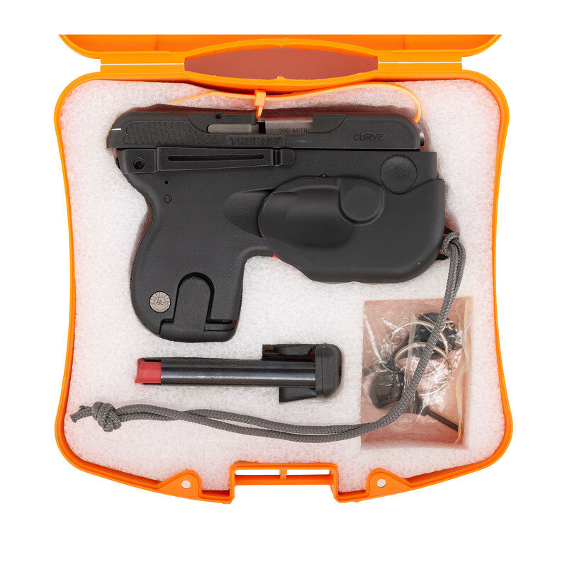.380 ACP. 2.625" barrel length. SN: 1D117486. Black Oxide finish to the slide with matte stainless barrel and black synthetic curved frame. Short-recoil operated internal hammer fired autoloading pistol fed by detachable single stack magazines. Sights consist of a white crosshair applied to the rear slide, and a laser sight integrated into the forward frame. Item shows standard make and model markings, and comes with belt hook to the frame. Comes in matching synthetic box with accessories including: two magazines, trigger cover, owner's manuals, and two internal safety lock keys. {MODERN}