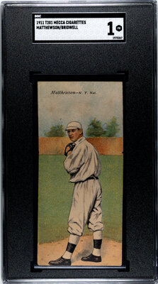 A 1911 Mecca Cigarettes T201 Christy Mathewson Double Folder Baseball Card (SGC 1)