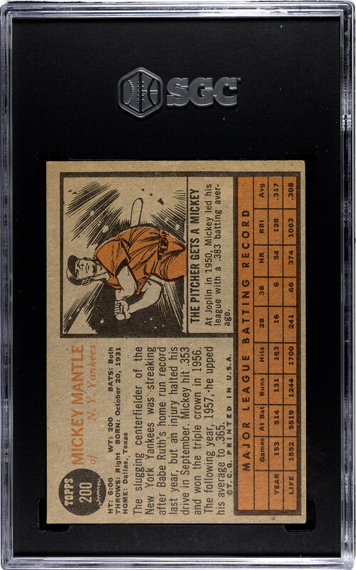 A 1962 Topps Mickey Mantle Baseball Card No. 200 (SGC Authentic)