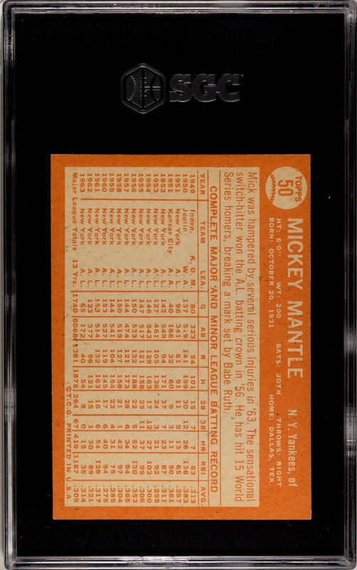 A 1964 Topps Mickey Mantle Baseball Card No. 50 (SGC 5.5 EX+)