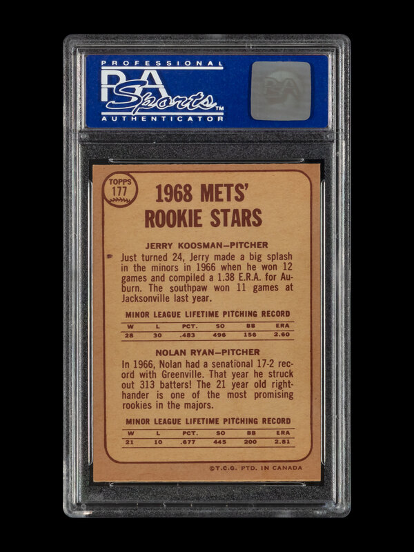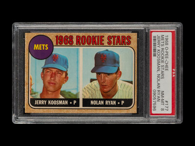 A 1968 O-Pee-Chee OPC Nolan Ryan Rookie Baseball Card No. 177 (PSA 8 NM-MT; POP 13 - NONE HIGHER)