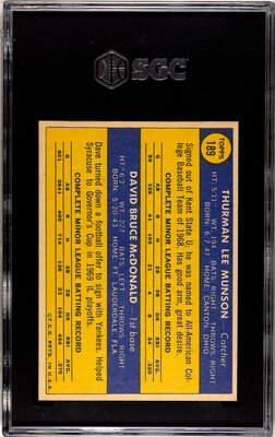 A 1970 Topps Thurman Munson Rookie Baseball Card No. 189 (SGC 7 NM)