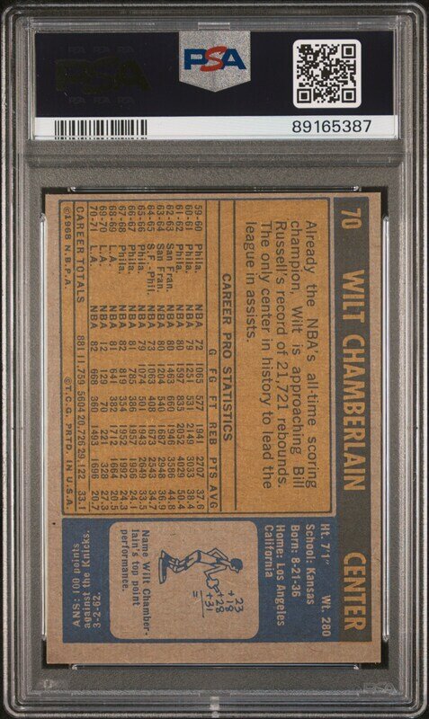 A 1971 Topps Wilt Chamberlain Basketball Card No. 70 (PSA 8 NM-MT)