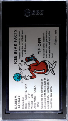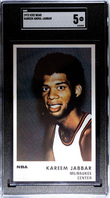 A 1972 Milwaukee Bucks Icee Bear Kareem Abdul-Jabbar Basketball Card (SGC 5 EX)