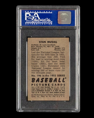 A 1952 Bowman Stan Musial Baseball Card No. 196 (PSA 8 NM-MT)