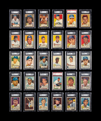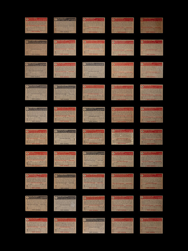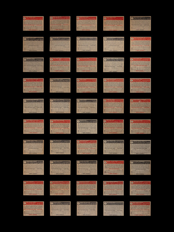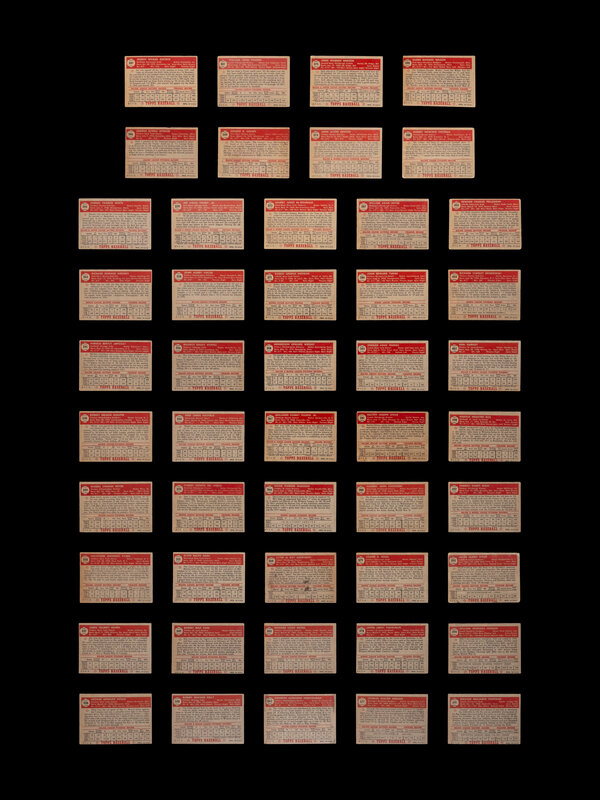 comprising card numbers Series 1: 1 (Andy Pafko, Black Back, SGC 4 VG-EX), 2, 3, 4, 5, 6, 7 (both black and red backs), 8, 9, 10, 11 (Phil Rizzuto, Black Back, SGC 4 VG-EX), 12, 13, 14, 15, 16 (both black and red backs), 17 (Jim Henan, Red Back, SGC 6 EX-NM), 18, 19, 20, 21, 22, 23, 24, 25, 26, 27 (both black and red backs), 28, 29, 30, 31, 32, 33, 34, 35, 36, 37, 38, 39, 40, 41, 42, 43, 44, 45, 46, 47, 48, 49 (Johnny Sain, Red Back, SGC 3.5 VG+), 50 (Mark Rickert, PSA 7 NM), 51 (both red and black backs), 52 (both red and black backs), 53, 54, 55, 56, 57, 58, 59 (Robin Roberts, Black Back, SGC Authentic), 60, 61, 62, 63, 64, 65, 66 (Preacher Roe, Black Back, SGC 5 EX), 67 (Allie Reynolds, Red Back, SGC 5 EX), 68, 69 (both red and black backs), 70, 71, 72, 73, 74, 75, 76, 77 (Bob Kennedy, Red Back, SGC 5 EX), 78 (both red and black backs), 79 (both red and black backs), 80; Series 2: 81, 82, 83, 84, 85, 86, 87, 88 (Bob Feller, SGC 4 VG-EX), 89, 90, 91, 92, 93, 94, 95, 96, 97, 98 (Bill Pierce, SGC 5.5 EX+), 99, 100, 101, 102, 103, 104, 105, 106, 107, 108, 109, 110, 111, 112, 113, 114, 115, 116, 117, 118, 119, 120, 121, 122, 123 (Eddie Yost, SGC 4 VG-EX), 124, 125, 126, 127, 128, 129, 130; Series 3: 131, 132, 133, 134, 135, 136, 137, 138, 139, 140, 141, 142, 143, 144, 145, 146, 147, 148, 149, 150, 151, 152, 153, 154, 155, 156, 157, 158, 159, 160, 161, 162, 163, 164, 165, 166, 167, 168, 169, 170, 171, 172, 173, 174, 175 (Billy Martin, SGC Authentic), 176, 177, 178, 179, 180, 181, 182, 183, 184, 185, 186, 187, 188, 189, 190 (Don Johnson, SGC 7 NM); Series 4: 191 (Yogi Berra, SGC 2 GOOD), 192, 193, 194, 195 (Minnie Minoso, SGC 2 GOOD), 196, 197, 198, 199 (George Zuverink, SGC 5.5 EX+), 200, 201, 202, 203, 204, 205, 206 (Joe Ostrowski, SGC 4.5 VG-EX+), 207, 208, 209, 210, 211, 212, 213, 214, 215, 216, 217, 218, 219, 220, 221, 222, 223, 224, 225, 226 (Dave Philley, SGC 6 EX-NM), 227, 228, 229, 230, 231 (Sam Zoldak SGC Authentic), 232, 233, 234, 235, 236, 237, 238, 239, 240, 241, 242, 243, 244, 245, 246, 247, 248, 249, 250; Series 5: 251, 252, 253 (Johnny Beradino, SGC 6 Ex-NM), 254, 255, 256, 257, 258, 259, 260, 262, 263, 264, 265, 266, 267, 268, 269, 270, 271, 272, 273, 274, 275, 276 (Jim Wilson, PSA 7 NM), 277 (Early Wynn, SGC 6.5 EX-NM+), 278, 279, 280, 281, 282 (Birdie Tebbets, SGC 7 NM), 283 (Phil Masi, SGC 5 EX), 284, 285, 286, 287, 288, 289, 290, 291 (Gil Coan, SGC 6 EX-NM), 292, 293, 294, 295, 296, 297, 298 (Bob Ross, SGC 6 EX-NM), 299, 300, 301, 302, 303, 304 (Sam Dente SGC 6.5 EX-NM+), 305 (Paul Richards, SGC 6 EX-NM), 306, 307, 308 (Luis Aloma, SGC 6 EX-NM), 309, 310.
