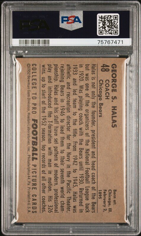 A Group of PSA Graded 1952 Bowman Large and Small George Halas Rookie Cards