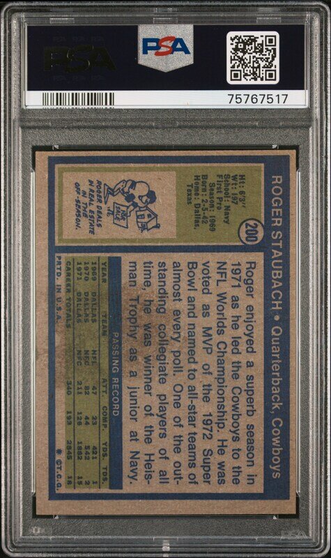 A 1972 Topps Roger Staubach Rookie Football Card No. 200 (PSA 5 EX)