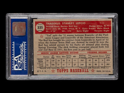 A 1952 Topps Ted Lepcio High Number Baseball Card No. 335 (PSA 6 EX-MT))