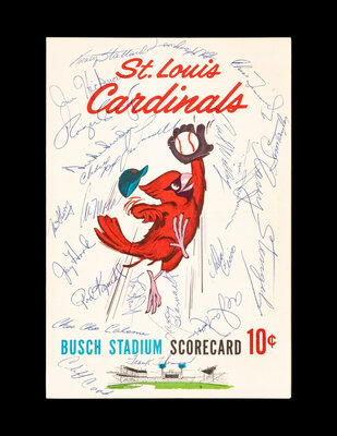 A Vintage Multi Signed St. Louis Cardinals Program Scorecard Featuring Casey Stengel