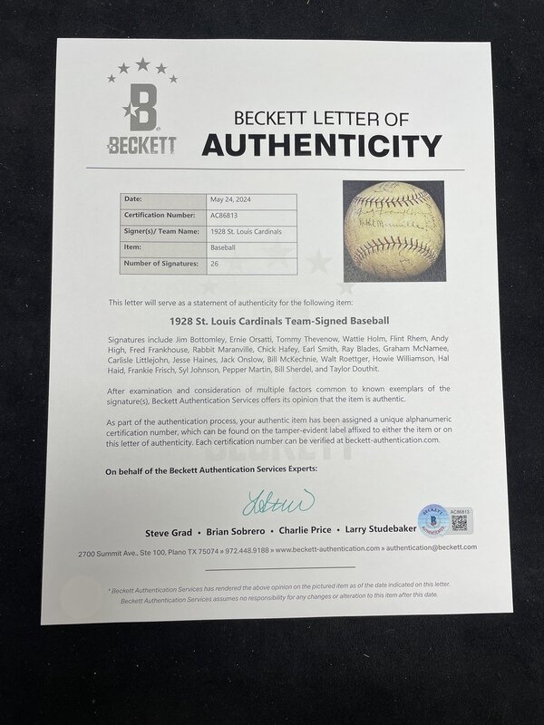 A 1928 St. Louis Cardinals Team Signed Autograph Baseball (Beckett Authentication Services)