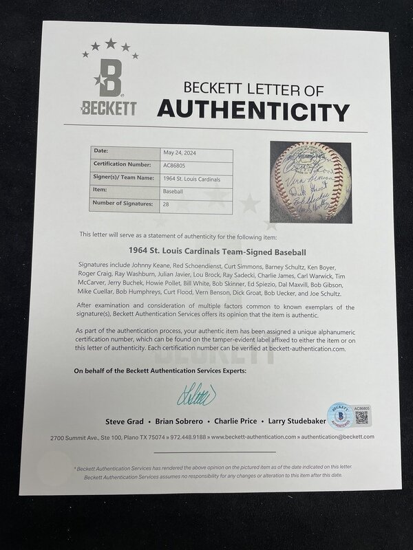A 1964 World Series Champion St. Louis Cardinals Team Signed Autograph Baseball (Beckett Authentication Services)