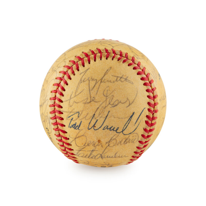 comprising signatures of Ozzie Smith, Vince Coleman, Darrell Porter, Andy Van Slyke, Jack Clark, Whitey Herzog, Tom Lawless, Tom Herr, Dan Cox, Red Schoendienst, Johnny Lewis, Bob Forsch, Ricky Horton, Jeff Lehti, Ken Dayley,Tito Landrum, Todd Worrell, Willie McGee, Brian Harper, Ivan DeJesus, Cesar Cedeno and Tom Nieto.