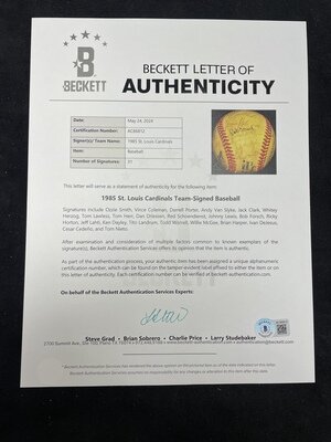 A 1985 St. Louis Cardinals Team Signed Autograph Baseball (Beckett Authentication Services)