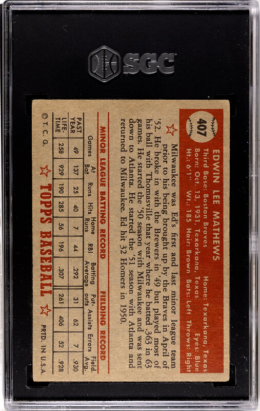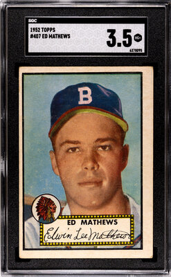 A 1952 Topps Eddie Mathews High Number Rookie Baseball Card No. 407 (SGC 3.5 VG+)