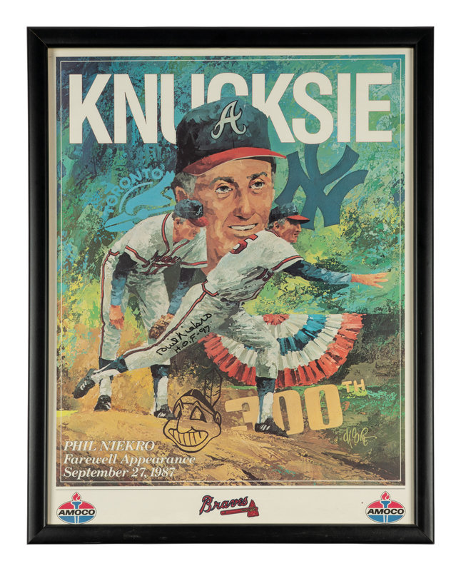 A Phil Niekro Signed Autograph "Knucksie" Print with Unique Chief Wahoo Sketch Drawn by Niekro (Beckett Authentication Services)