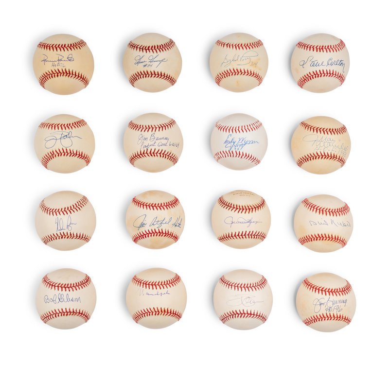 A Large Group of Hall of Fame Pitcher Single Signed Autograph Baseballs,