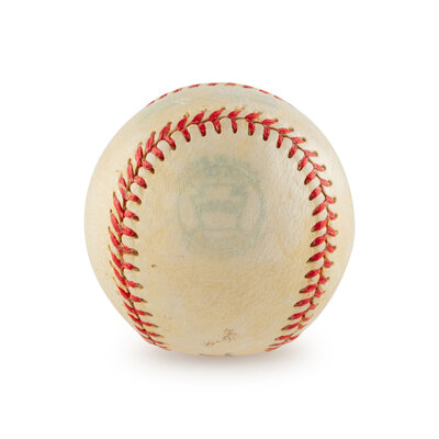 An uncommon artifact from the storied career of The Sultan of Swat, this miniature baseball features a wonderful autograph placed on the sweet spot. The Bambino would place this ball in his massive hands and carefully apply his iconic signature with as great of ease as if signed on a regulation ball. Both the signature and ball are exceptionally clean considering the age of this treasure.