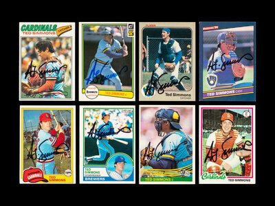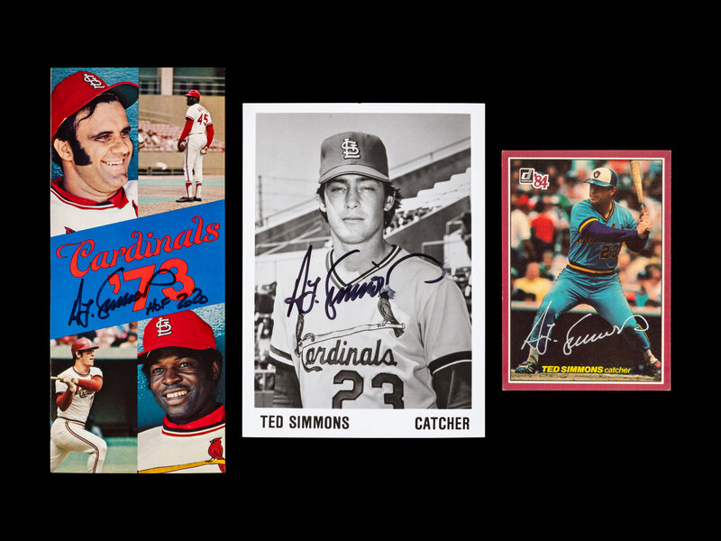 A Group of 20 Hall of Fame Ted Simmons Signed Autograph Items