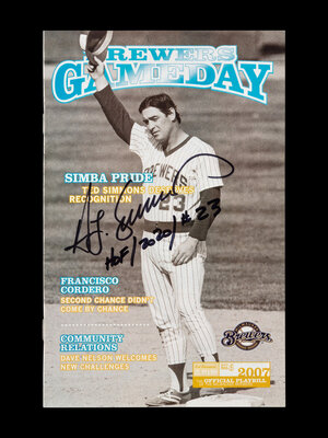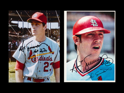 four St. Louis Cardinals photographs; 1973 St. Louis Cardinals large schedule; 1977 St. Louis Cardinals yearbook; 2007 Milwaukee Brewers program; two Milwaukee Brewers photographs; May 1983 edition of What's Brewing Milwaukee Brewers magazine.