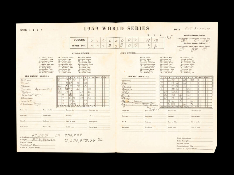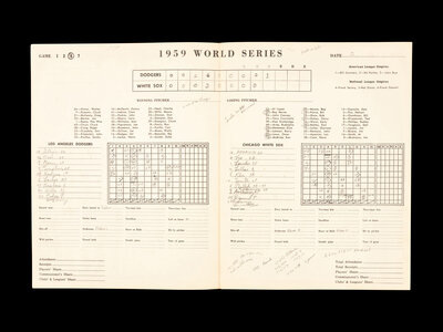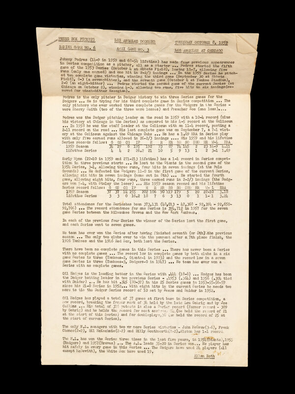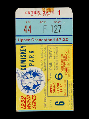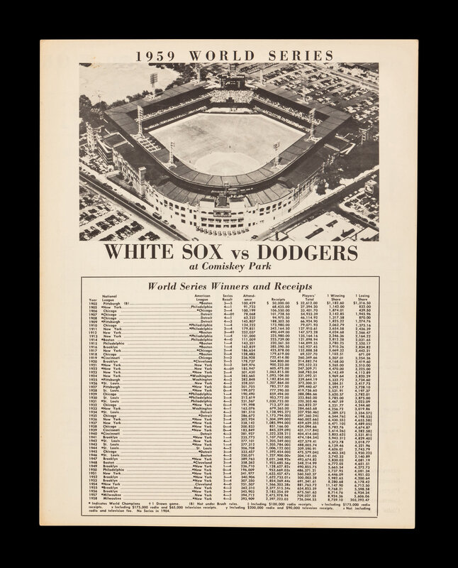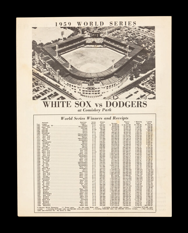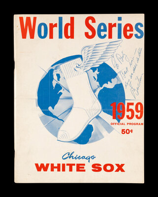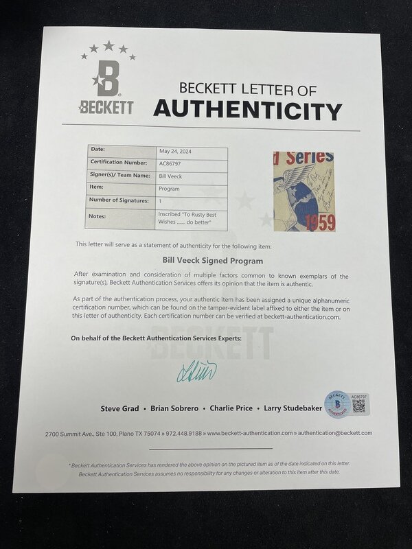 A Bill Veeck Signed Autograph 1959 World Series Program With Game 6 Ticket Stub (Beckett Authentication Services)