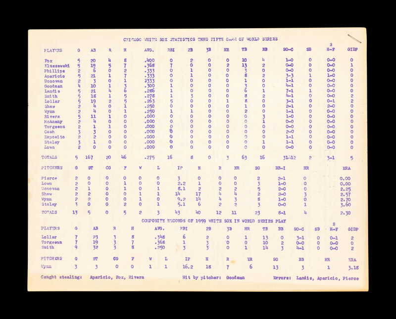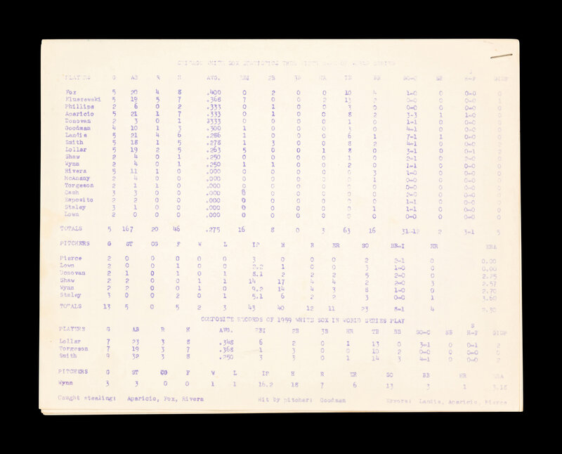 warmly inscribed by the Hall of Fame owner to a disappointed White Sox fan: "... Sorry We Didn't Do Better Bill Veeck"