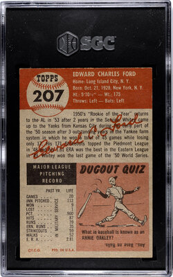 A 1953 Topps Whitey Ford Baseball Card No. 207 (SGC 5 EX)