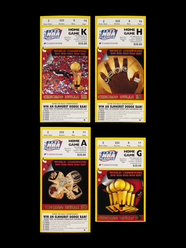 A Group of Four 1998 Chicago Bulls Michael Jordan NBA Playoff Tickets