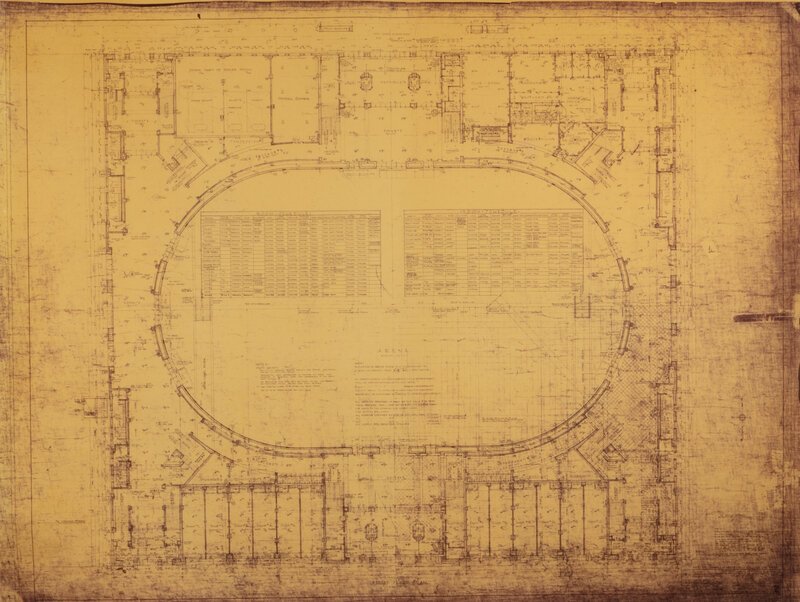 Original architectural blueprint on wove paper of the Chicago Stadium as designed by the architecture firm Hall, Lawrence, & Ratcliffe, Inc. (light wear at extremities, closed tears, pinholes). Sheet 42.5 x 53 in.