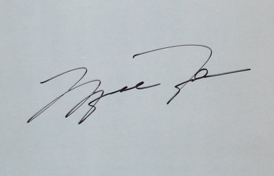 iconic image of Jordan displaying the rewards of his legendary championship career with the Chicago Bulls. Inscribed "Michael Jordan" in black Sharpie.