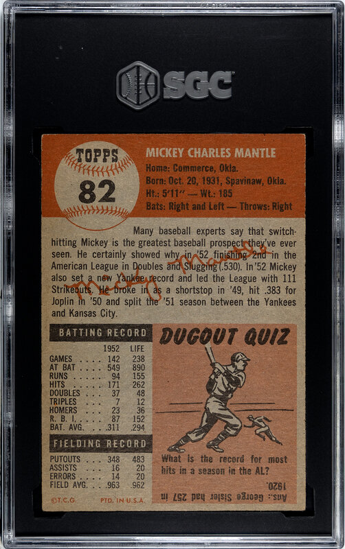 A 1953 Topps Mickey Mantle Baseball Card No. 82 (SGC 5 EX)